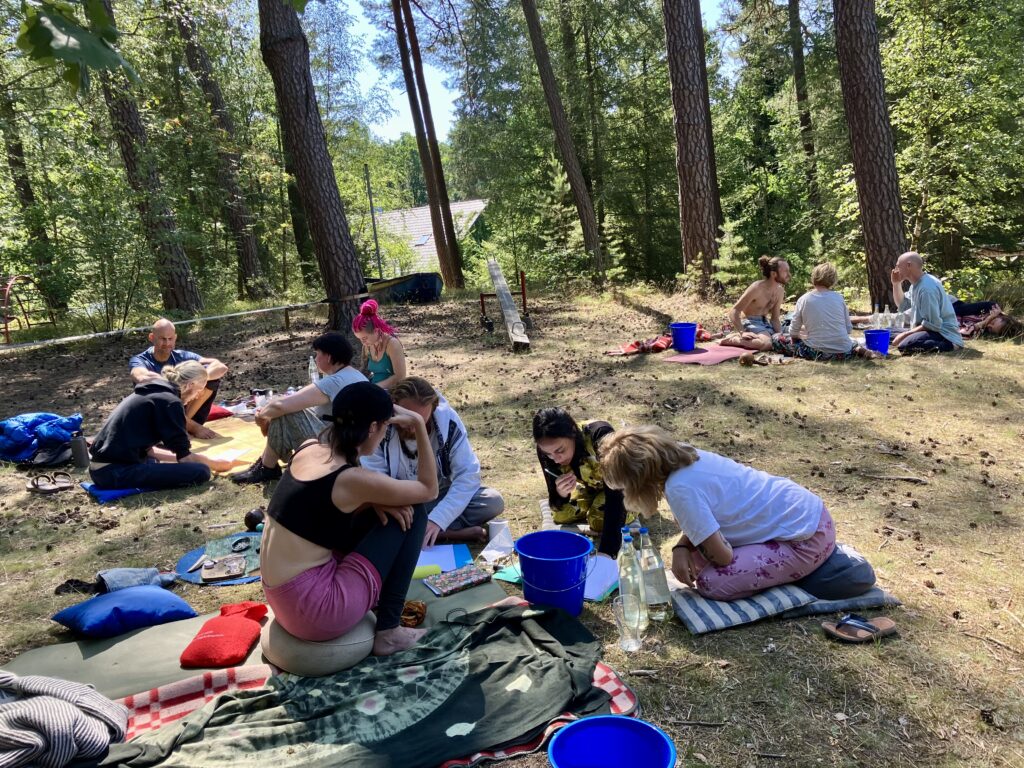Das Basic Kambo Practitioner Training bei der IAKP ist ein 14-tägiger Präsenzkurs. Kleinere Kurse oder 1:1-Trainings kommen manchmal mit 12 Tagen aus, aber das ist das absolute Minimum. 14 Tage klingt erst mal lang. Das Wissen, das wir dir vermitteln wollen, passt aber gerade so in diesen Zeitraum hinein. Es gibt fast jeden Tag Unterrichts-Blocks. Nur so schaffen wir es, das ganze Workbook einmal durchzuackern. Fragerunden, Anekdoten aus der Kambo-Praxis und natürlich Feedback nach den Behandlungen runden den theoretischen Teil der Trainings ab. Wir unterhalten uns also grob geschätzt rund 50 Stunden lang über Kambo. Möchtest du diese lange Zeit lieber am Bildschirm verbringen oder im Wald auf einer Wiese?